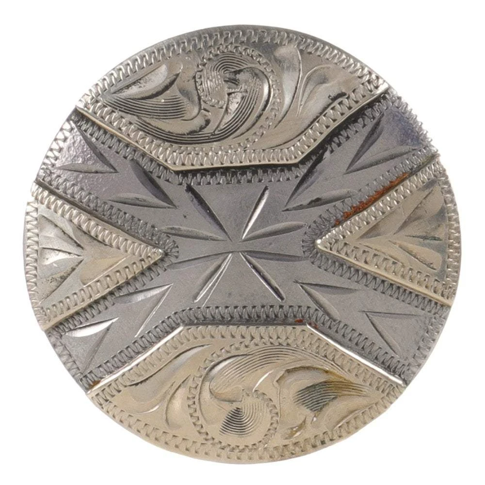 This silver concho by Cowperson Tack would be a great addition to your tack. The concho is a wood screw design which is specifically designed for saddles. This concho is 1 1/2 inches in length.
