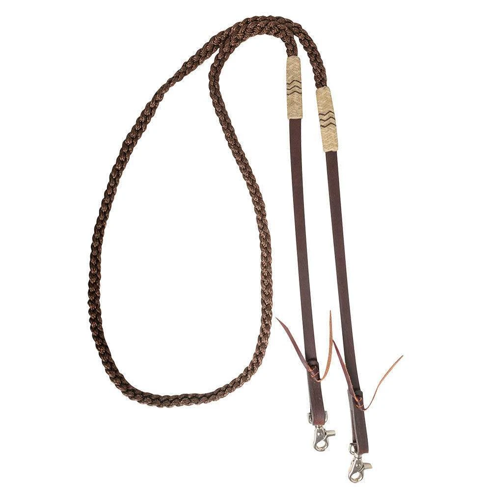 These Cashel Adjustable Flat Braid Reins have rawhide accents and adjustable chocolate leather ends for a soft, supple feel.