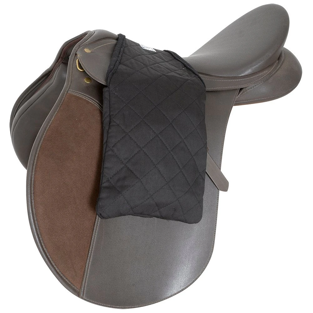 Pocketed slipper keeps your stirrups from scratching your saddle while longeing, hauling or storing. Made of soft quilted poly cotton twill, it lays across the saddle with the weight of the stirrups keeping it in place. This item is a great way to getting your saddle looking brand new!