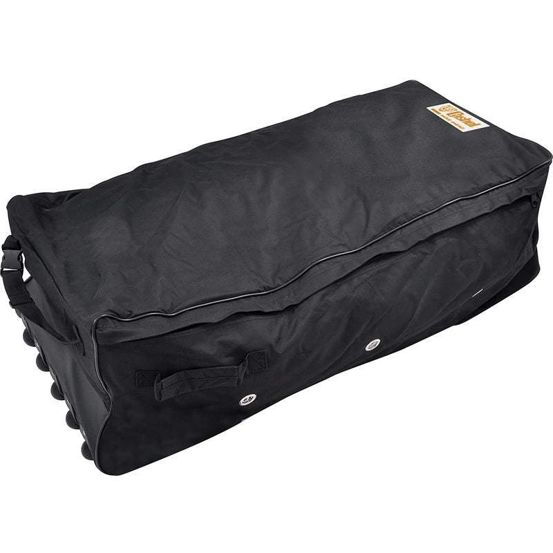 Made of tough, water resistant nylon, with two sizes to fit a two strand or three strand hay bale. Heavy duty zipper on three sides for easy loading. Heavy duty plastic wheels and nlylon handle provide easy transport. Convenient side handles for loading in the truck.