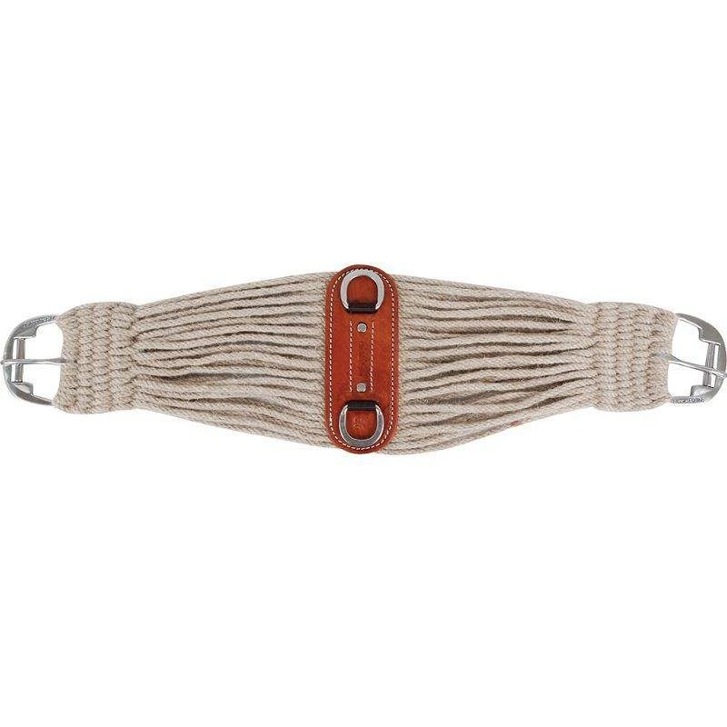 This little roper style mohair cinch is constructed smaller so that you can use it on a colt. It is still 31 strands so that you can cinch up evenly on both sides when your’e starting a young horse or saddling up a pony.