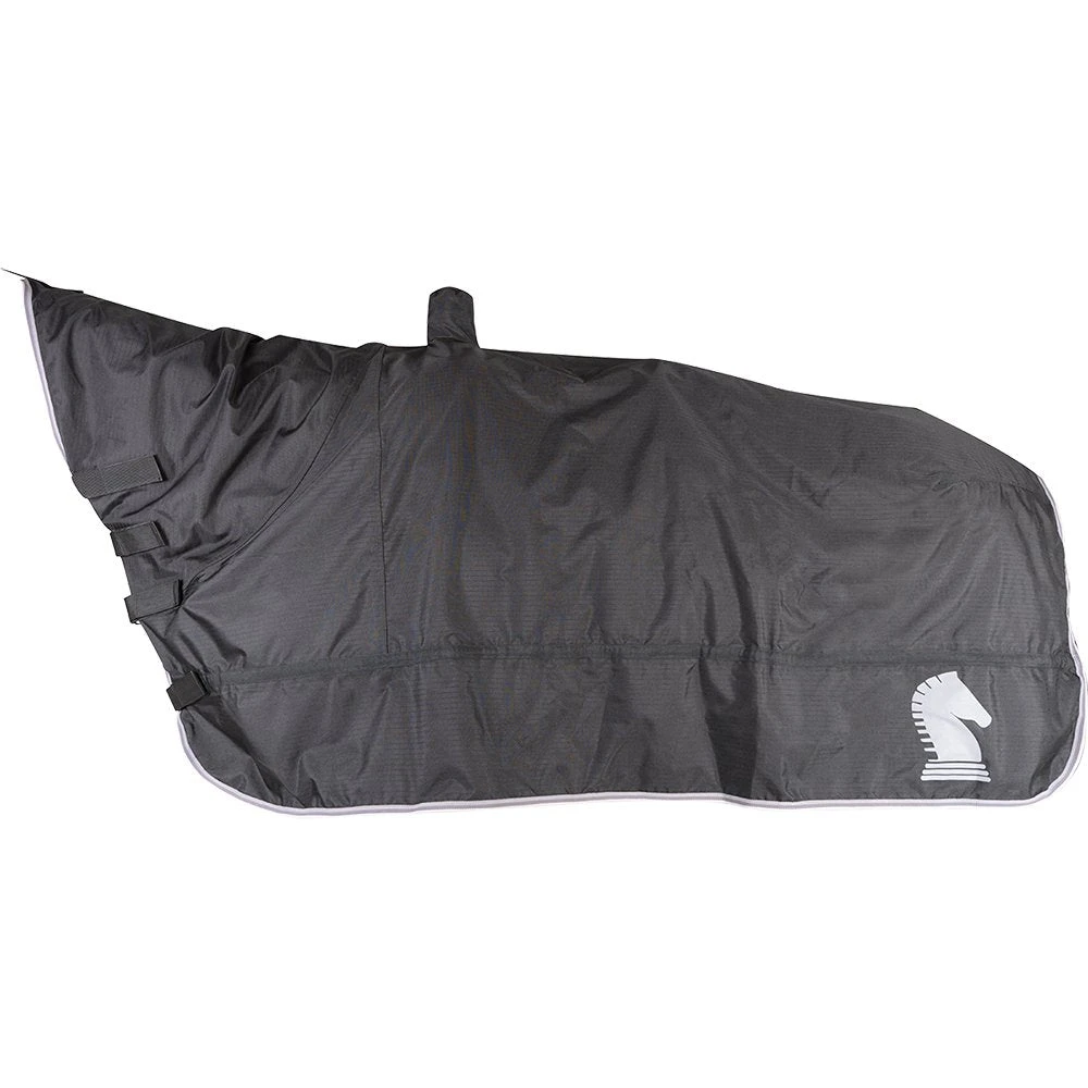 The Horse and Saddle Cover keeps your horse, saddle and equipment protected form rain and outside elements. Fits completely over saddle and horse with a pocket for the saddle horn. It is lined with 600 denier polyester with nylon tail strap, straps attaches to a halter with a hook and loop strap. Four quick and easy front hook and loops straps adjustable nylon webbing belly strap for security.