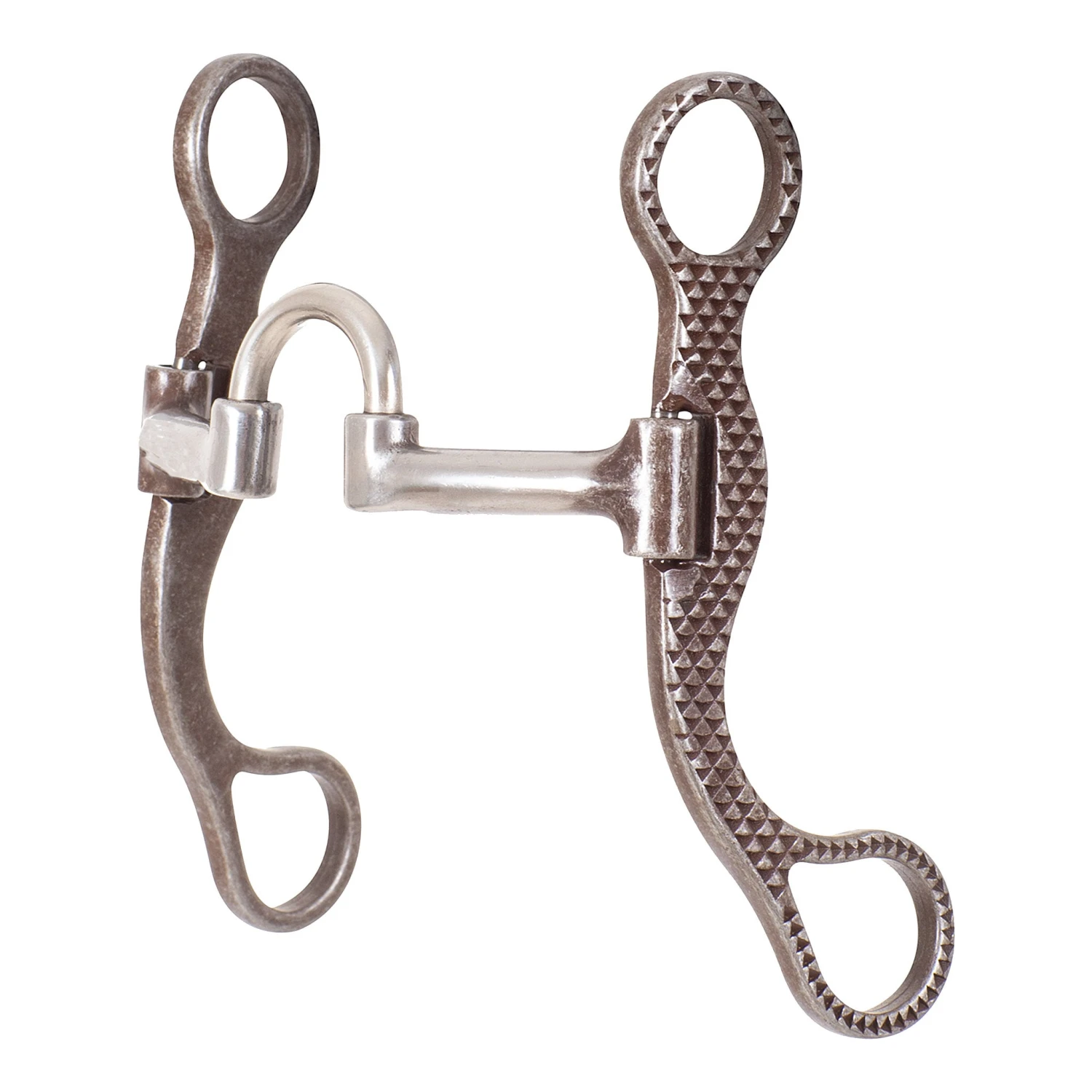 This mild cheek has a 2-1/2″ purchase and 3-1/2″ shank, with a swept-back design. The ratio between the purchase and shank lengths is responsible for the slow and gentle pressure on all points of contact with the horse’s mouth. The primary contact point is the corners of the mouth, similar to the O Ring. It is also suitable for use with a training fork or martingale to encourage collection and poll control. The mouthpiece has copper inlays that stimulate salivation. The mouthpiece is 5-1/8″ wide and 3/8″ in diameter, and its curved shape ensures soft, evenly distributed pressure on the bars, tongue, and corners of the mouth.