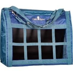 This Classic Equine Top Load Hay Bag is top loaded and extra large, making it easy to fill. Extended top flap has a hook-and-loop closure so hay can’t be drug out the top. Hay must be pulled from the webbed squares in front, lessening waste. Long adjustable straps with a snap make it easy to hand almost anywhere. Made of tough poly for durability with a mesh bottom that allows dust and dirt to fall through.