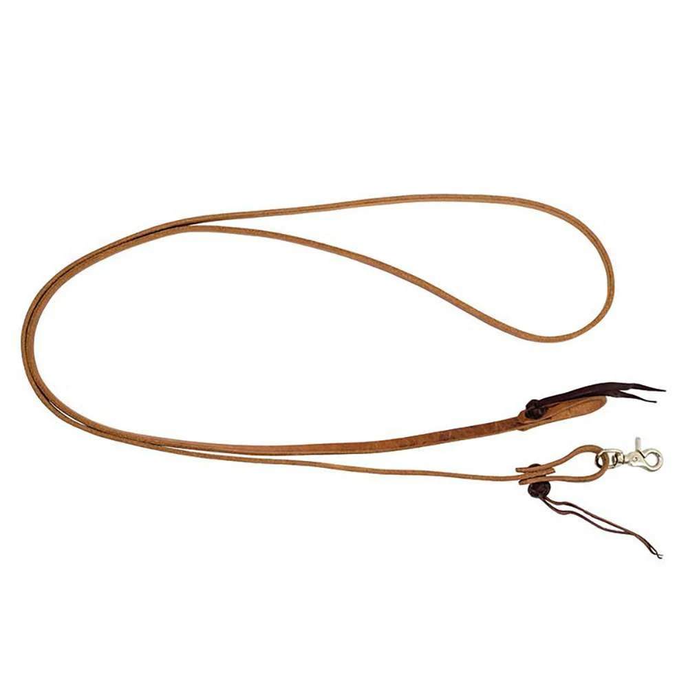 Cowboy Knot Harness Leather Roping Reins measure 1/2″ wide and 8ft long. Constructed out of harness leather and features knot tie ends with a scissor snap on end. WS2091011010008