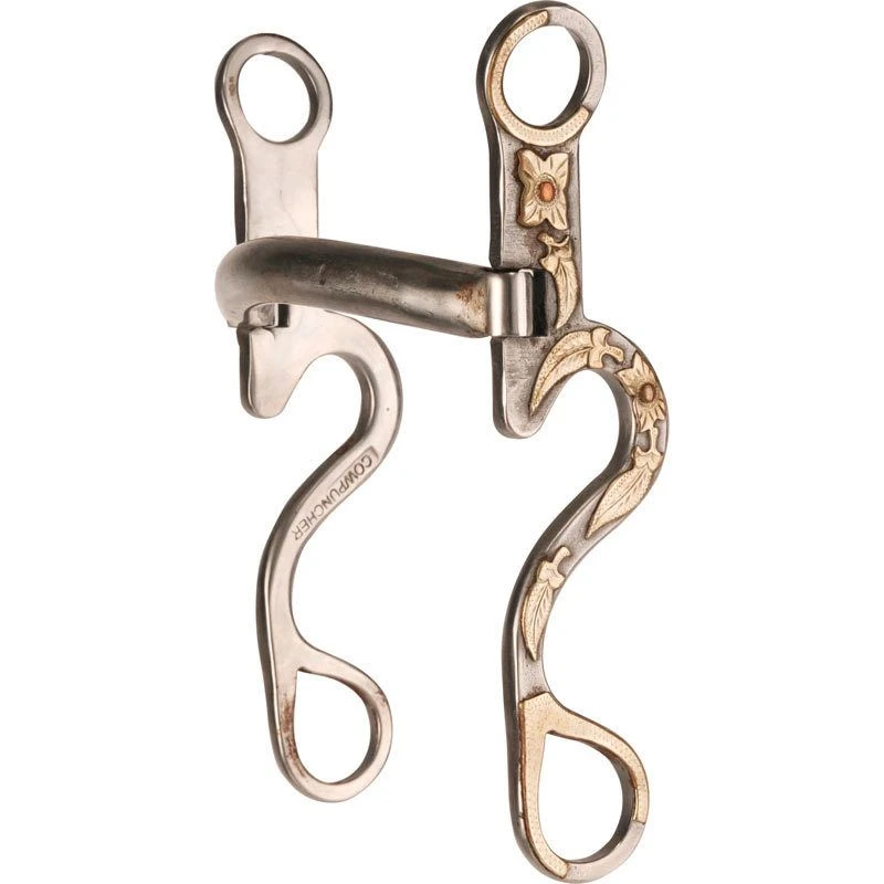 Silver mounted cavalry shank bit. 7-3/4 shanks with 5-1/4 mullen mouth.