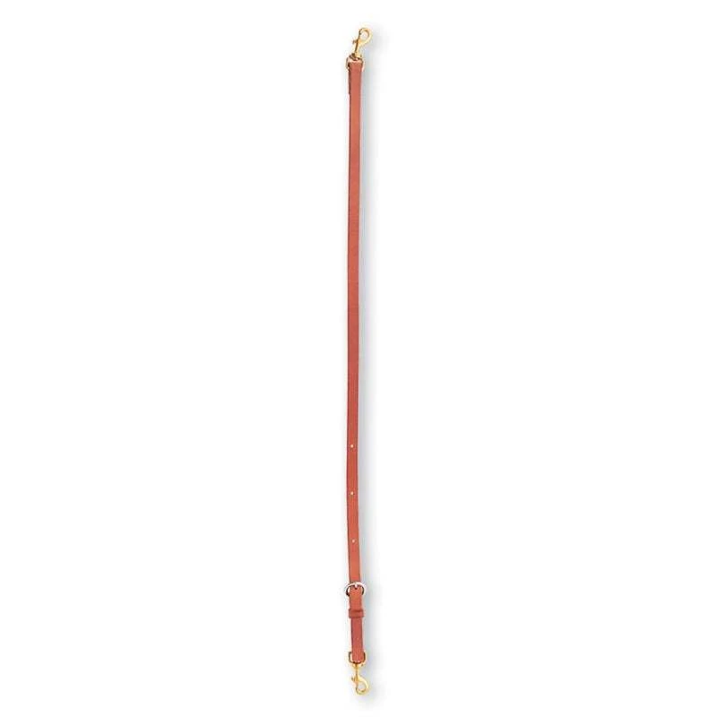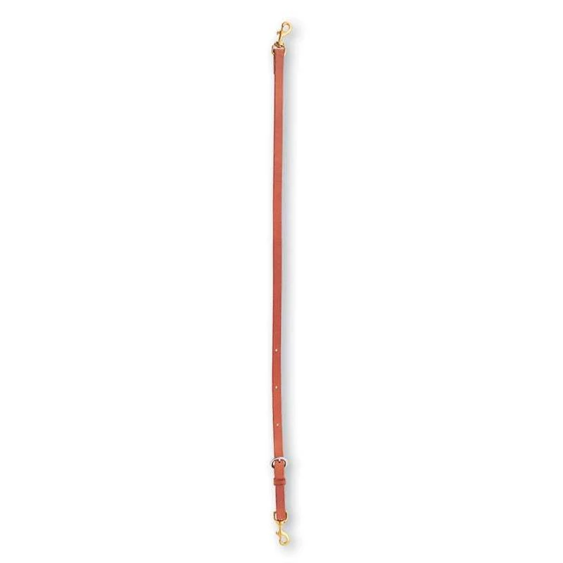 This Martin Saddlery Tiedown strap is made of harness leather and is a natural color. It measures 3/4″ in width, adjustable length, and has a brass clip on each end.