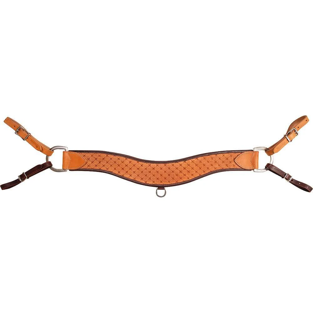 Martin Saddlery 4′ Steer Roping Breast Collar that is built with natural roughout leather and features quilted stamp tooling. This breast collar is designed specially for steer ropers, team ropers, and more!