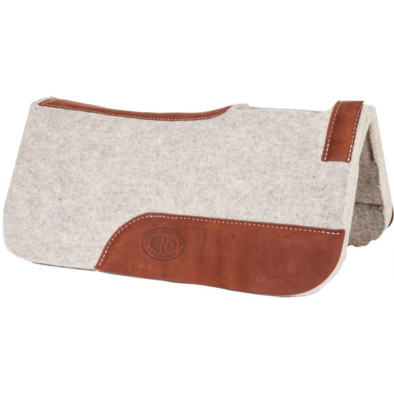 Protect your pony with this contoured 1in. pad from Mustang.This tan pad is made of wool and will fit the contour of any pony. The pad is accented with light brown leather and white stitching.