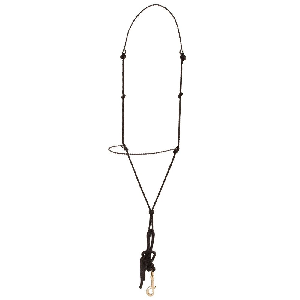 Black twisted wire is featured on the crown and nose. The headstall made from braided poly rot-resistant rope. This training tool promotes proper head position but requires very light hands.