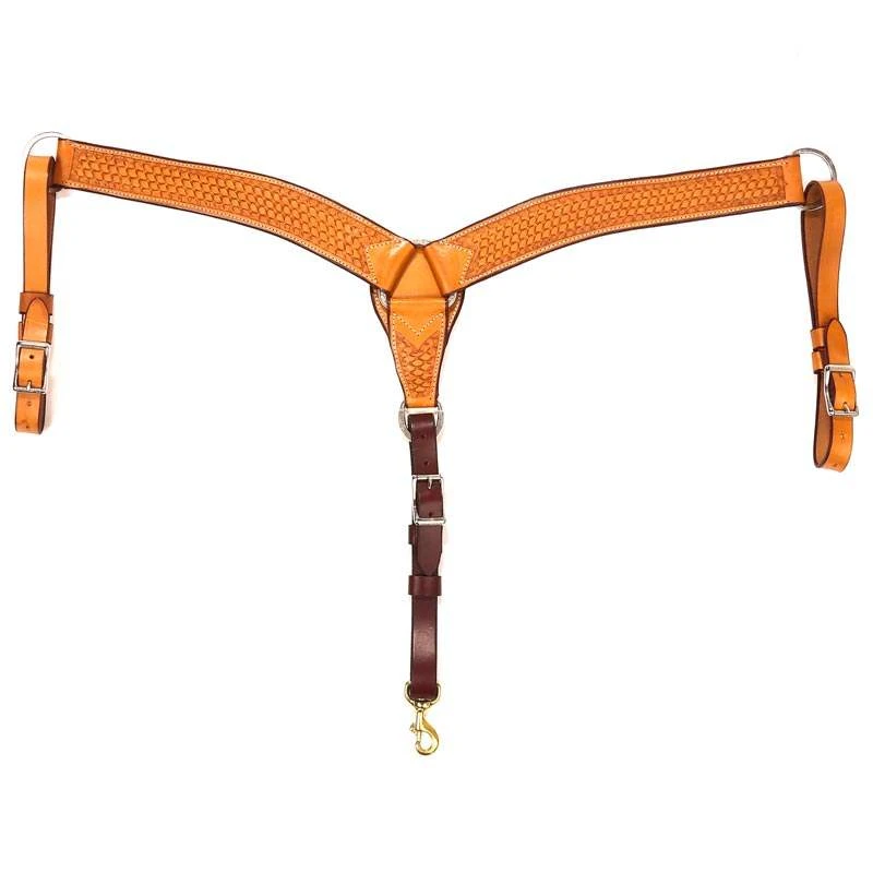 Here is a traditional favorite! It is an understated beauty with medium oil and basket stamping throughout. It is 2 inches wid and is equipped with dee rings at the tugs and at the breast.