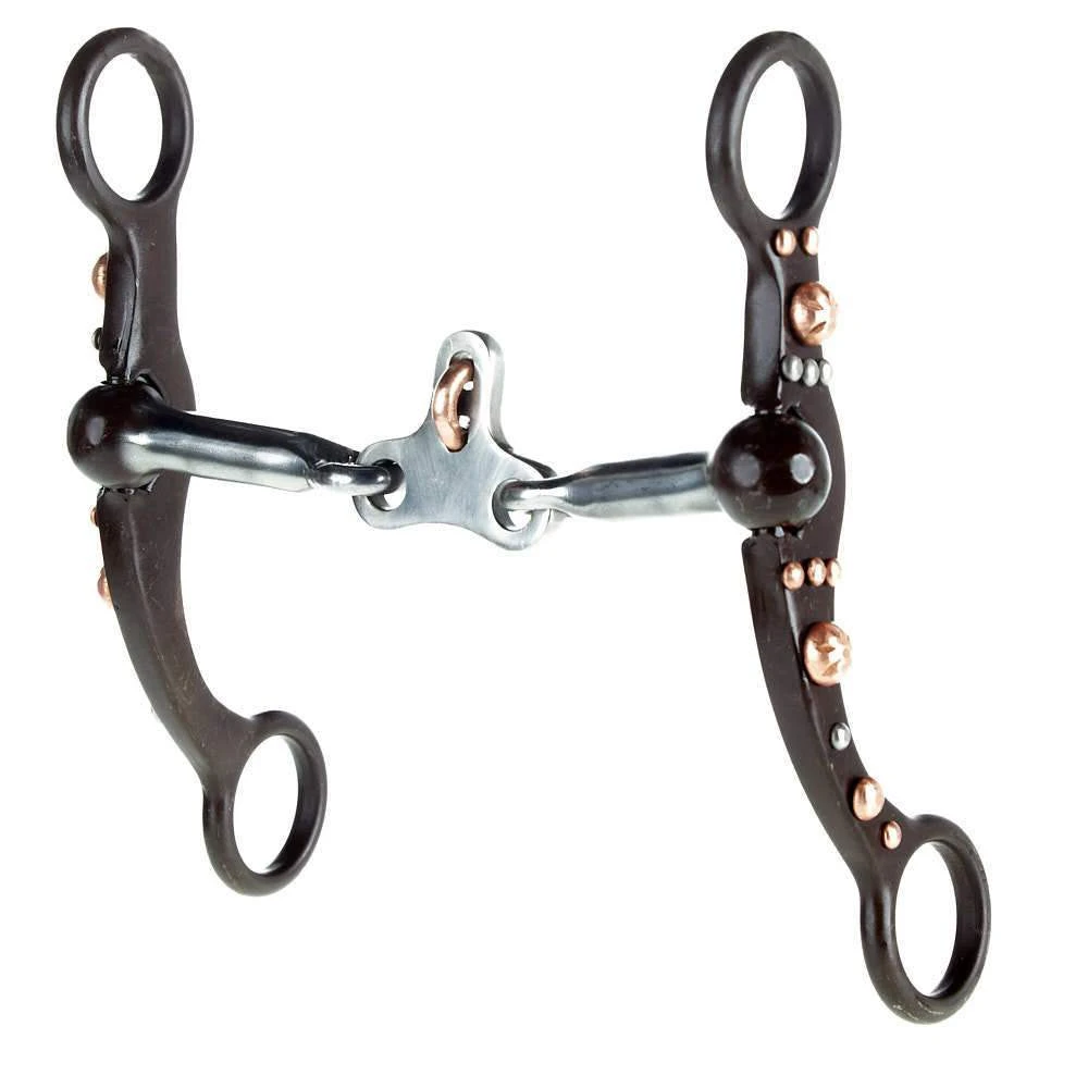 This NRS bit features a 4-3/4 inch floating spade bit with 5-3/4 inch cheeks that have an antique brown finish and beautiful copper dots.