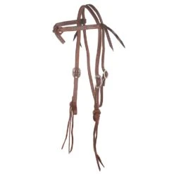 This Rattlesnake Knotted Brownband Headstall from NRS Tack will quickly become your favorite! Rattlesnake rosette feature holds the rattlesnake knot securely. Retro functional and efficient quick change rig. Made from durable oiled harness leather, this headstall is built to last.