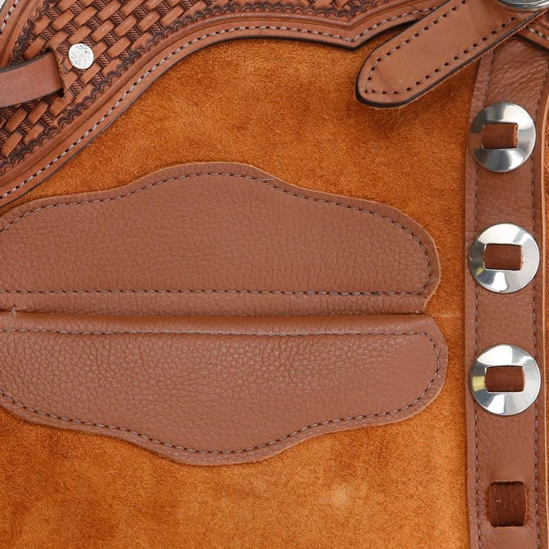 Chaps and chinks come with stainless rings in order to easily pack a tie-string.