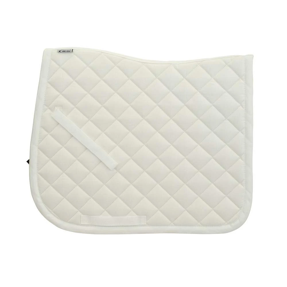 A traditional dressage saddle pad that is practical and an excellent choice for the show ring. It ismade of cottong to aid in a comforatable ride. It features anti-sweat mesh lining, synthermax poly-fiber lining, girth and billet keepers.