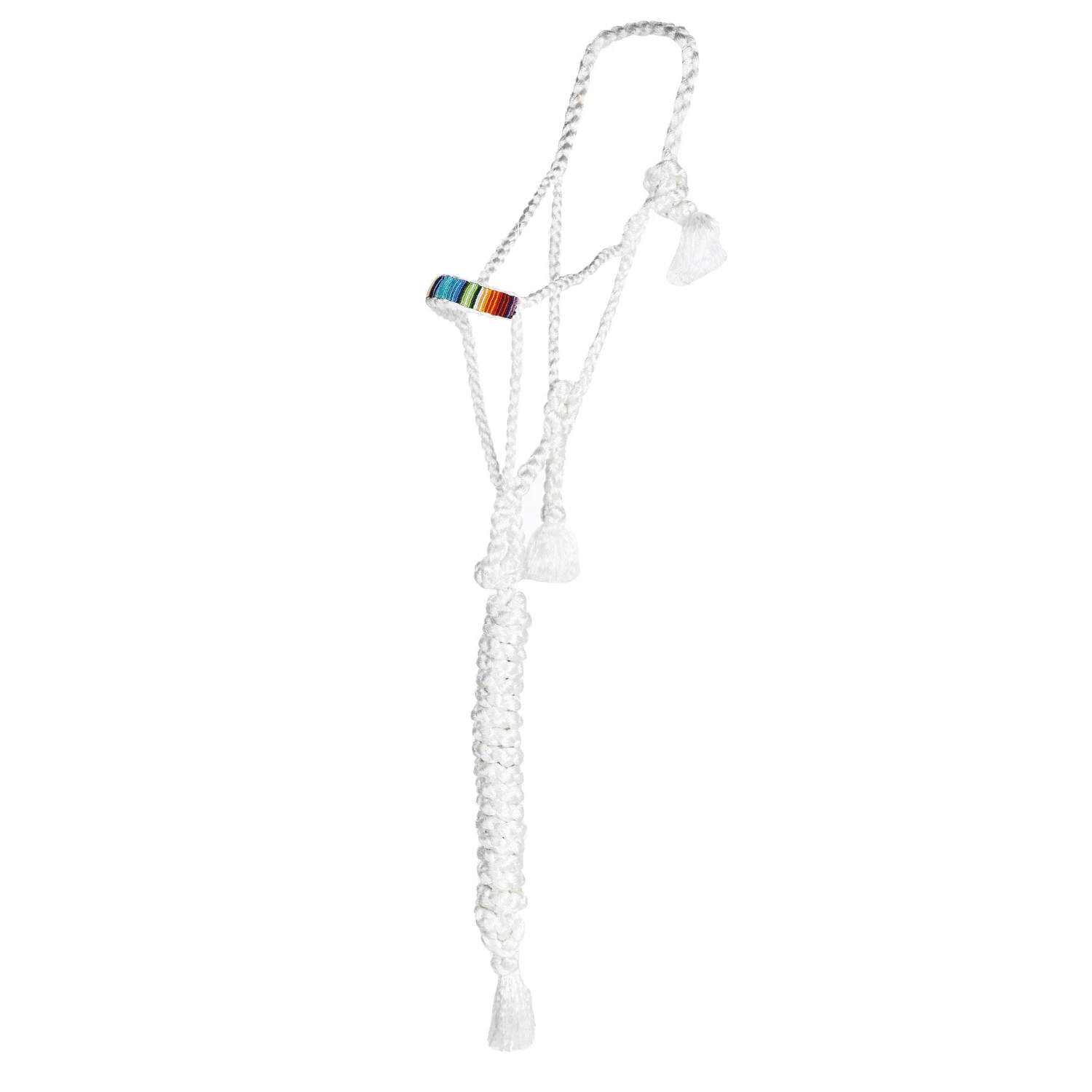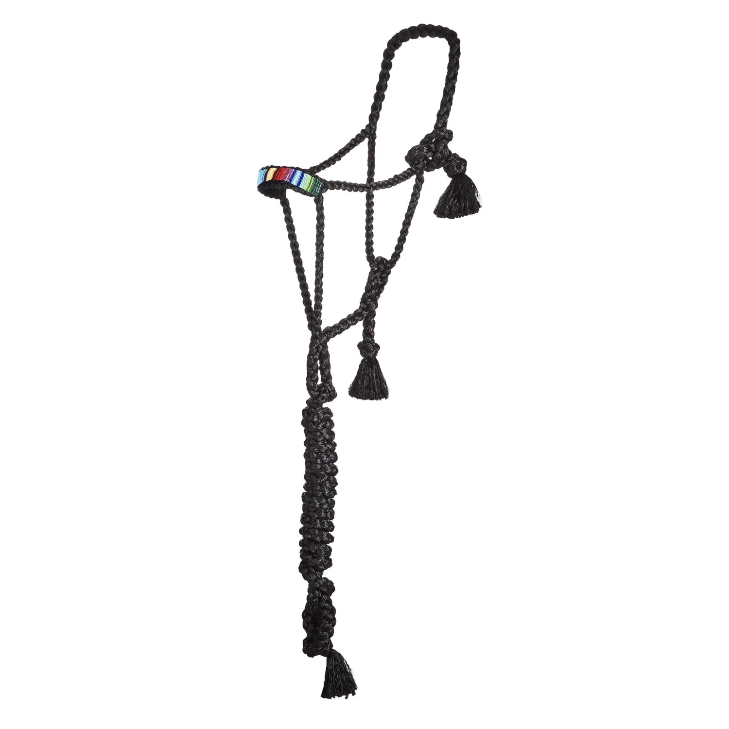 A braided soft yet sturdy rope halter that features a flat nose and comes complete with a matching ten foot lead. Beaded nose band gives a fun fashion flare to the noseband.