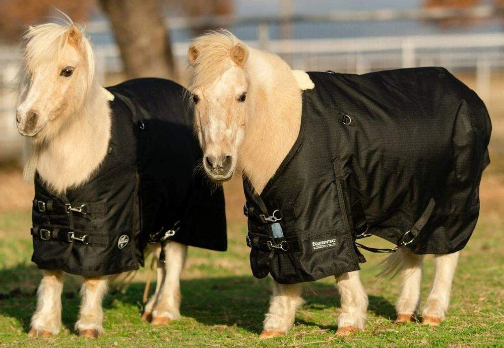 This pony sized Professional’s Choice winter blanket is constructed of a 1200 denier rip-stop outer shell that is waterproof and breathable and 300 gram Holifil insulation to keep horses warm. Shoulder gussets allow full freedom of movement. Double-buckle front closure is fully adjustable for just the right fit. Fleece at withers prevents mane rub out. Removeable leg straps help to secure the blanket. Adjustable front snap closure ensures a perfect fit on neck cover.