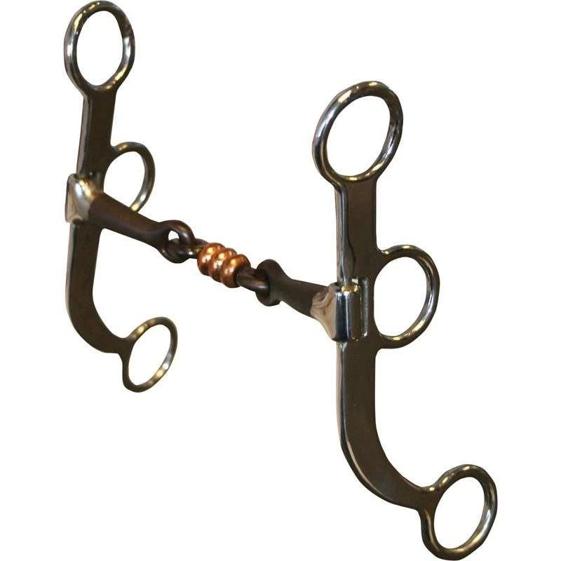 This little three piece bit is one that everyone should have in their barn. It has cheek rings that can transition young horses from the full rings of a snaffle to the cheeks of a shanked bit. As there is progression, the reins can be attached to the rein rings. The copper rollers on the dogbone will encourage your horse to self sooth in stressful situations. The construction of the mouthpiece allows superior flexion and the shanks off just enough “whoa.” Professionals Choice continues to be a market leader renowned for revolutionizing the equine industry through diligent scientific research and producing the highest quality products strictly for the horse’s safety and well-being. This leadership position has earned Professionals Choice the respect of top trainers, professionals and everyday horsemen all over the world.
