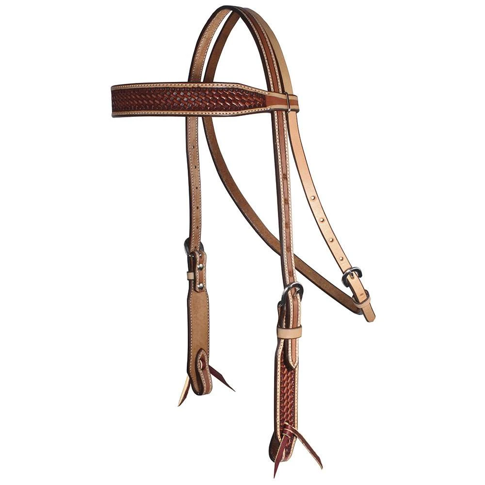 This versatile collection will be at home in almost every discipline. Hand tooled chestnut brown with a natural border.