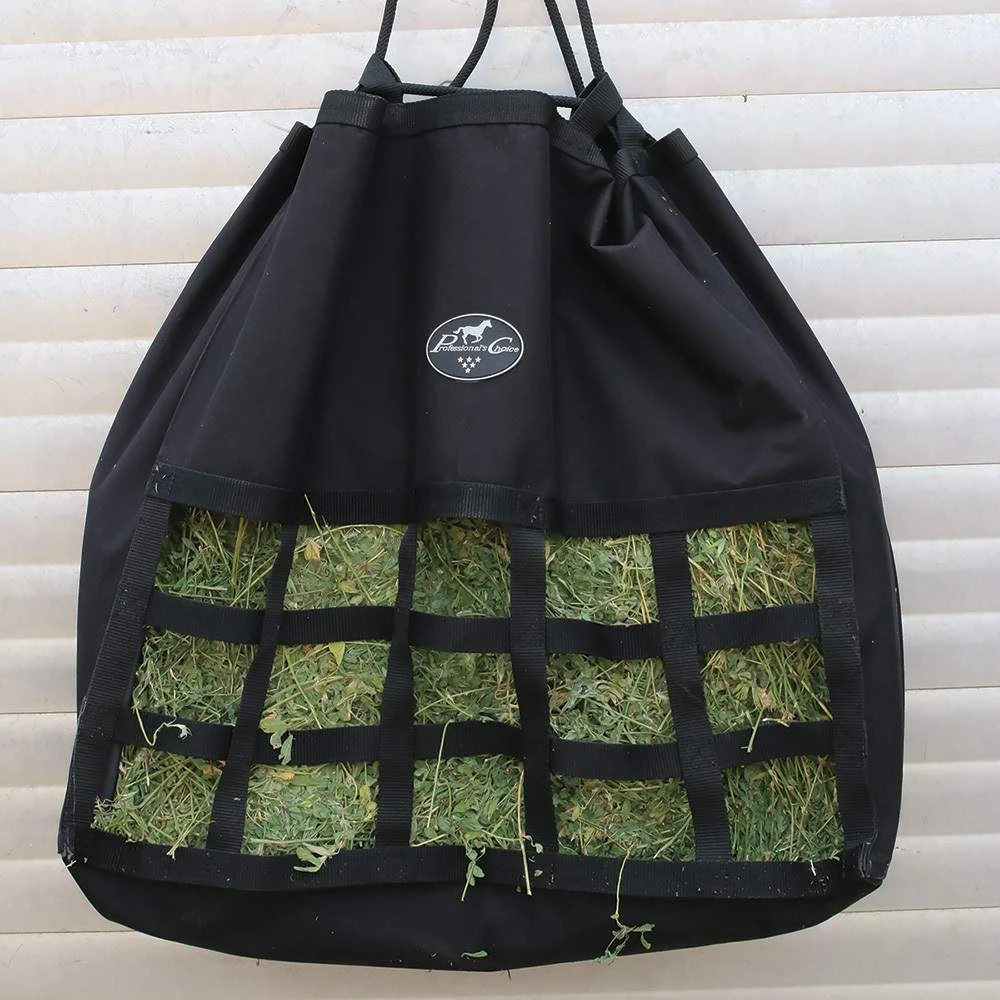 Free of any hardware, this medium feed hay bag from Professional’s Choice is specially designed not to scratch your trailer. The top draw string closure opens fully to allow easy top loading, as well as height adjustability and is complete with reinforced webbing loops and a heavy duty rope. The medium feed encourages horses to eat slowly for proper digestion.