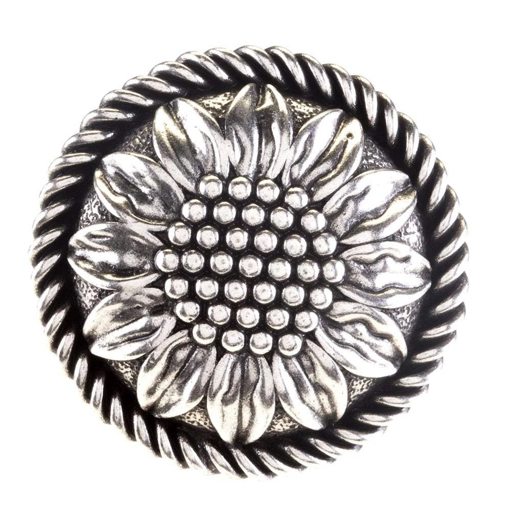 This sunflower concho measures at 1 1/5in long. Offered in a Chicago screw. Great for headstalls, saddles, and leggings!