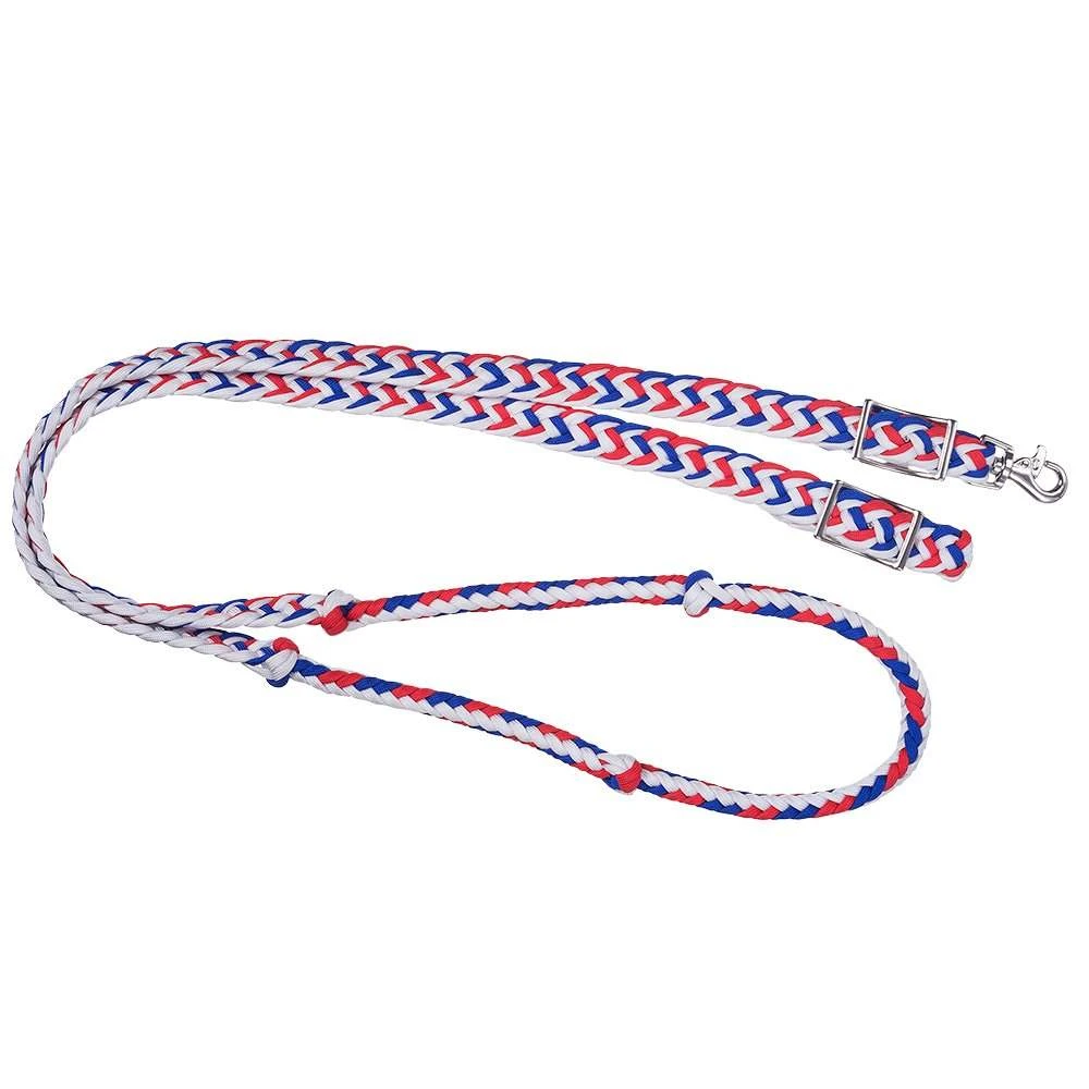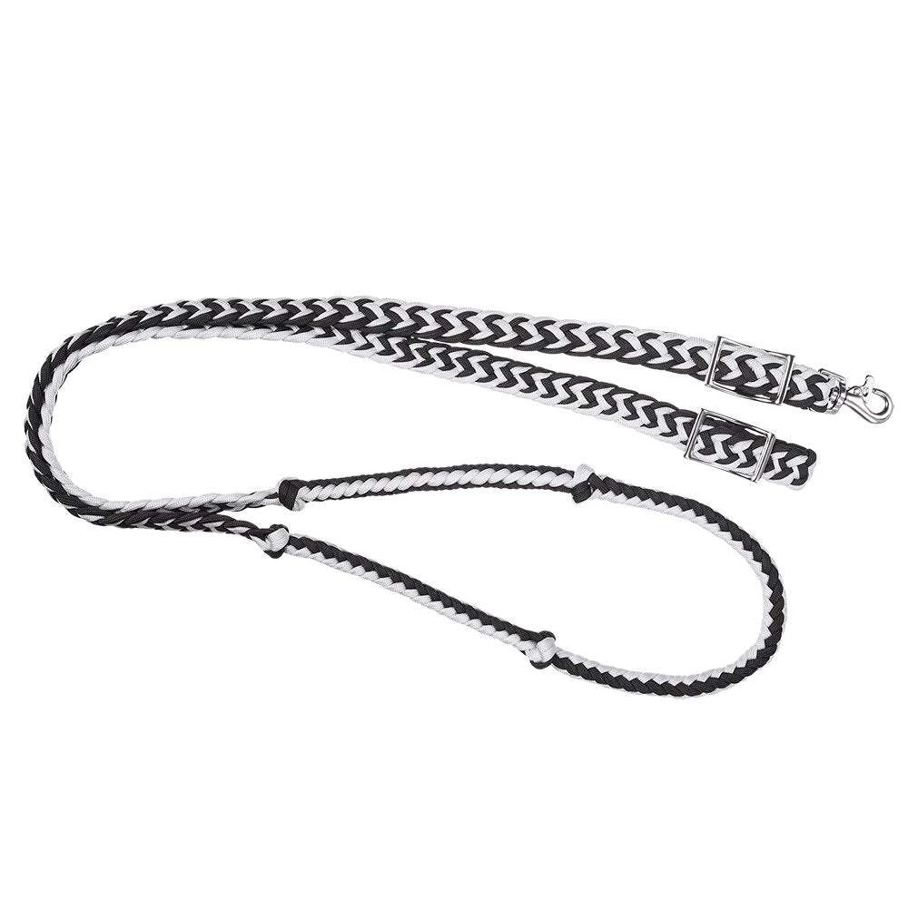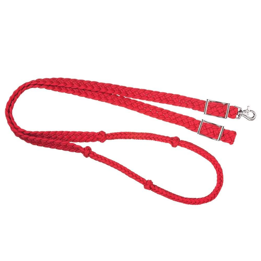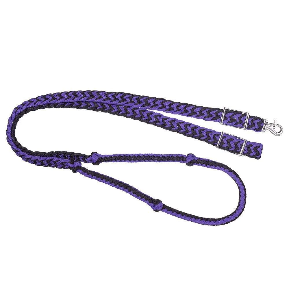 Top of the line cord knotted roping rein. Knotted for better grip and control. Scissor snap on one end. Adjustable with conway buckles. 8′.