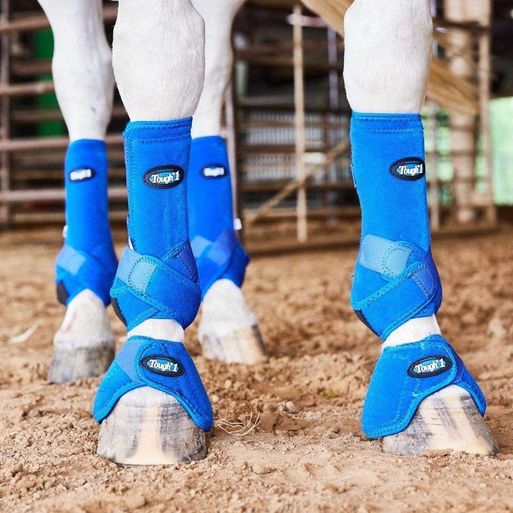 Tough1 Max Cooltex Sport Boots are constructed with Tough1’s new “Cooltex” lining that helps wick away moisture and keep your horse’s legs cool. They are a neoprene base designed with a contoured fit that molds to your horse’s leg. If you are looking for sport boots with extra support, these are the boots for you. They have innovative cross cradle straps to provide fetlock and suspensory support. Finished out with Quick Closures and protective patches at the reach of the boot. This item is sold in a 2pack. Also available in a 4pk. 64-2022F