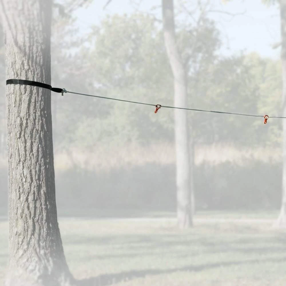 Safely secure your horse when trail riding/camping where there are no hitching rails. 2 horse swivel No-Knot picket line kit: 30 ft. long 3/8” diameter nylon rope, 2 tree saver straps, 2 swivel No-Knot picket line ties, easy to follow set-up instructions and zippered nylon storage bag.