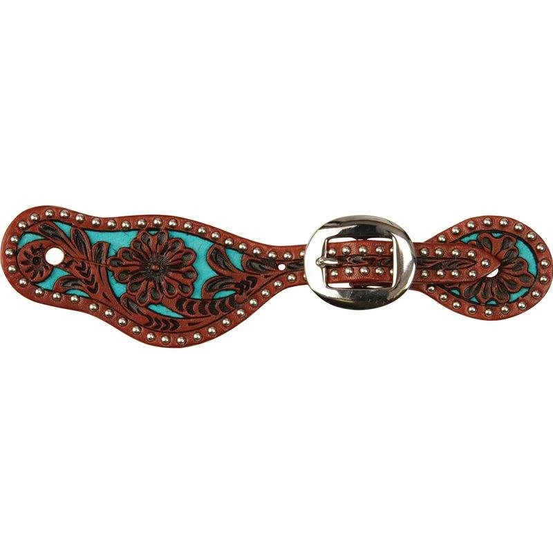 These spur straps feature a pretty turquoise inlay. Youth size.